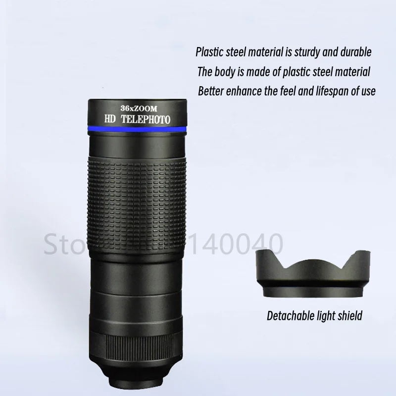 The 36X Smartphone Telephoto Lens Kit is a powerful accessory designed to transform your phone into a long-range camera. With 36X magnification, it allows you to capture distant subjects with impressive clarity, making it ideal for bird watching, outdoor photography, and nature observation. The universal clip design ensures compatibility with most iPhone and Android smartphones. Included with a stable tripod, it helps reduce shaking for clearer and more focused images. The high-definition optical lens enhances detail and improves overall image quality. Compact and portable, it is easy to carry for travel, camping, and outdoor adventures. The adjustable focus allows you to fine-tune your shots for better precision. Durable construction ensures long-lasting use in various environments. Easy to install and use, it is suitable for beginners and photography enthusiasts alike. This telephoto lens kit is a great solution for capturing far-away moments with your smartphone.