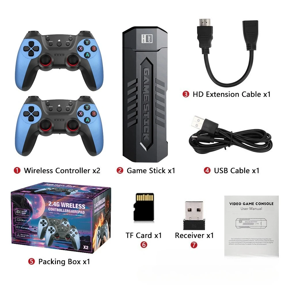 The 4K Retro Game Console Stick is a compact gaming system packed with thousands of classic games for endless entertainment. Featuring support for 40,000+ games and over 30 emulators, it offers a wide variety of retro gaming experiences. With 4K HD output, it delivers clear and vibrant visuals on your TV or computer. The plug-and-play design makes setup quick and easy without complicated installation. It comes with two wireless controllers, allowing you to enjoy multiplayer gaming right out of the box. The compact stick design makes it portable and easy to carry anywhere. Ideal for both kids and adults, it brings back nostalgic gaming fun with modern convenience. The user-friendly interface allows smooth navigation through games and settings. Compatible with most TVs and monitors, it offers flexible use at home. This retro game console is perfect for reliving classic games and sharing fun moments with family and friends.