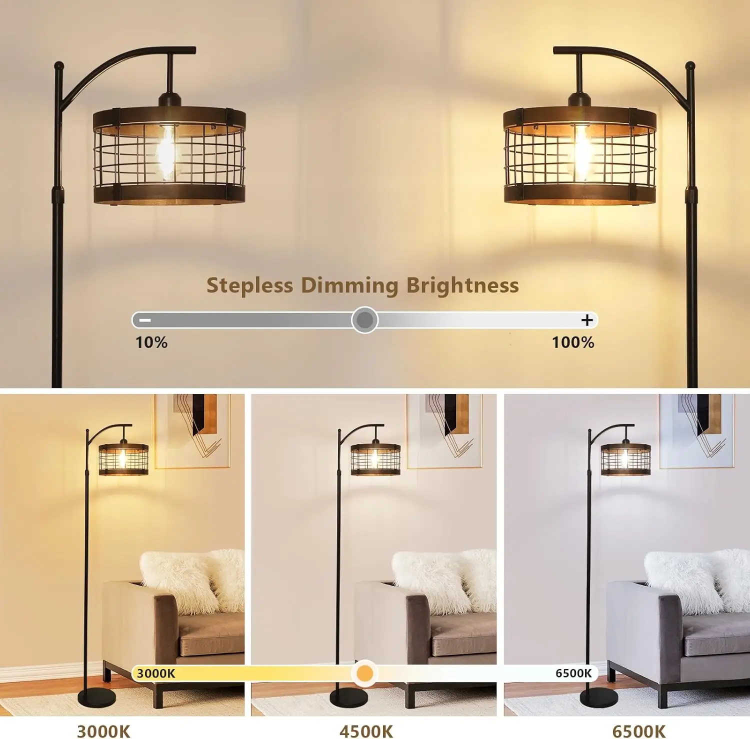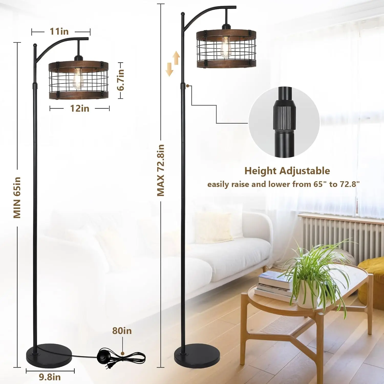 This arc floor lamp combines vintage charm with modern functionality to enhance any living space. Featuring a graceful curved design, it extends light over sofas, chairs, or tables, making it perfect for living rooms and bedrooms. The included dimmable LED bulb allows you to adjust brightness levels to create the ideal lighting for reading, relaxing, or entertaining. With a convenient remote control, you can easily manage lighting settings from anywhere in the room. The adjustable height feature provides flexibility to suit different spaces and lighting needs. Its sturdy base ensures stability while maintaining a sleek and elegant appearance. The vintage-inspired design adds character and warmth, blending beautifully with both classic and modern interiors. Energy-efficient LED technology ensures long-lasting use while reducing power consumption. Easy to assemble and operate, it is suitable for everyday use. The soft and evenly distributed light helps reduce eye strain, making it comfortable for extended use. Ideal for creating ambient lighting or focused illumination, it adapts to a variety of settings. The high-quality construction ensures durability and reliable performance. Whether used as a statement piece or a functional light source, this arc floor lamp delivers style and practicality. Elevate your home décor with this elegant and versatile lighting solution.